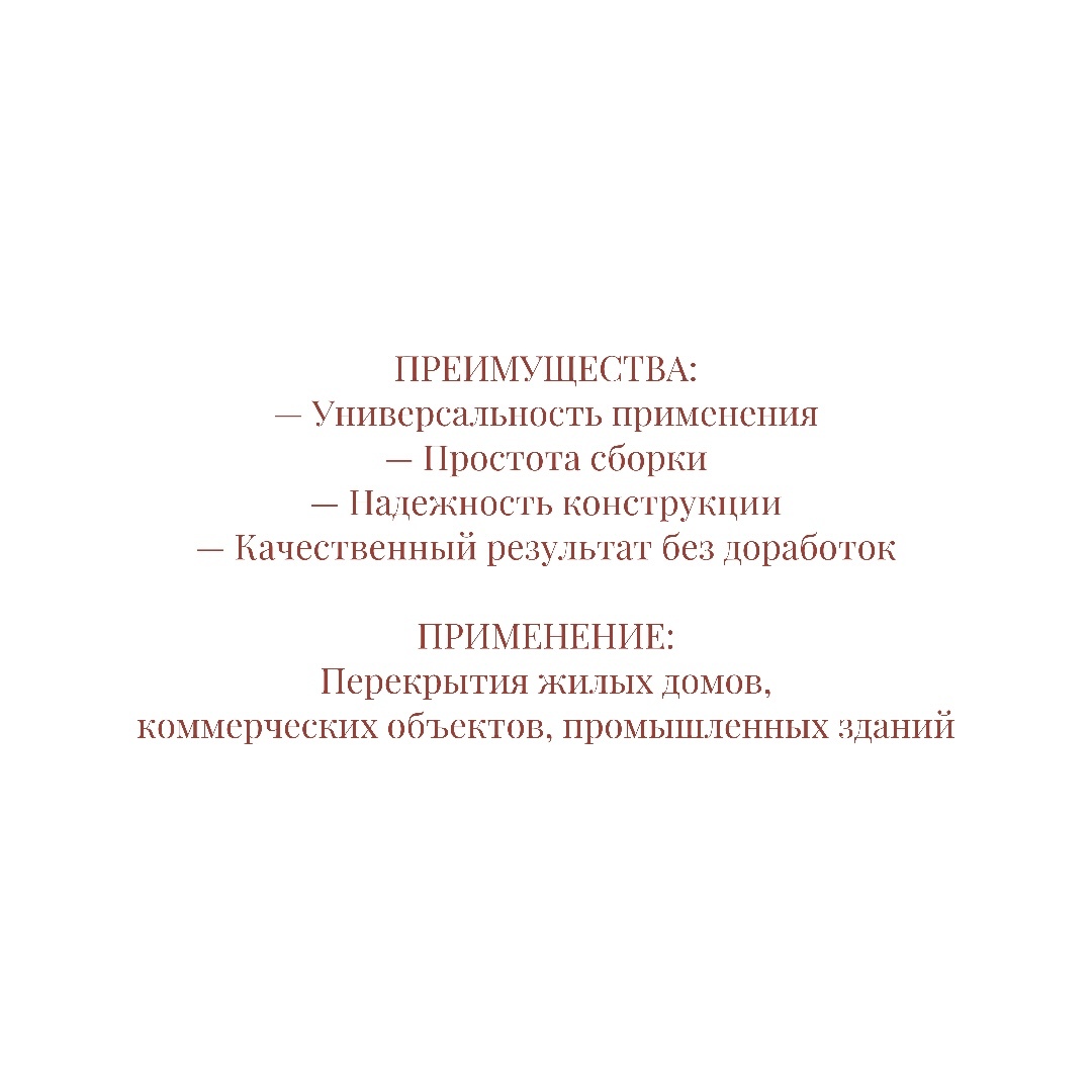 Опалубка перекрытий — это горизонтальная система, состоящая из стоек, балок и настила, предназначенная для формирования монолитных плит. Стойки принимают на себя нагрузку и поддерживают балки, на которые укладывается фанера, образуя прочную и ровную поверхность для заливки бетона. Такая система обеспечивает надежность конструкции, удобство монтажа и высокое качество готового перекрытия. Опалубка перекрытий подходит для заливки конструкций любой высоты и толщины, позволяя эффективно реализовывать как стандартные, так и сложные строительные задачи.