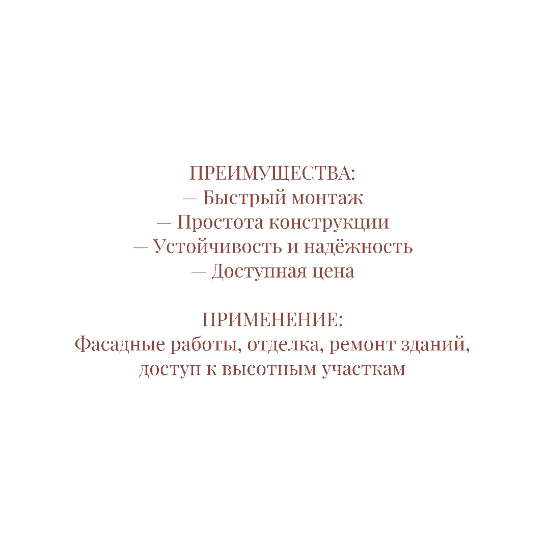 Рамные леса — это практичная и надежная система, предназначенная для выполнения фасадных и строительных работ на высоте. Конструкция состоит из рам, горизонтальных и диагональных связей, что обеспечивает устойчивость и безопасность при эксплуатации. Система легко и быстро монтируется, позволяя набирать необходимую высоту в зависимости от задач объекта. Рамные леса активно используются для фасадных работ, ремонта и отделки зданий. Это один из самых удобных и бюджетных вариантов строительных лесов на рынке, который сочетает в себе простоту, надежность и экономичность.