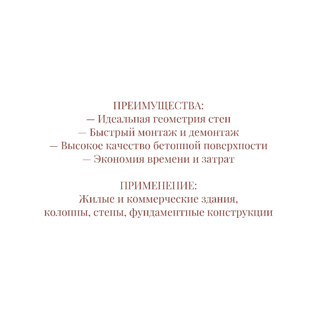 Стеновая опалубка — это надежное решение для быстрого и качественного возведения монолитных стен. Она обеспечивает идеальную геометрию конструкций, прочность и безопасность на каждом этапе работ, что особенно важно при современном строительстве. Благодаря продуманной системе монтажа, установка выполняется быстро и без лишних затрат времени, а результат — ровные и аккуратные поверхности, готовые к дальнейшей отделке. Стеновая опалубка подходит для заливки стен любой толщины и сложности: от простых перегородок до сложных архитектурных элементов. Это универсальный инструмент, который помогает сократить сроки строительства, снизить расходы и получить стабильно высокий результат.